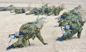 圖為演習(xí)中匍匐前進(jìn)的日本士兵。 東方IC