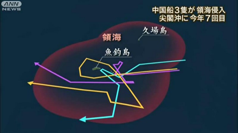 報道稱, 18日上午8時54分至9時17分,中國3艘海監(jiān)船相繼進(jìn)入釣魚島附近的“日本領(lǐng)!,日本海上保安廳巡邏船立即發(fā)出警告。中國“海監(jiān)50”則通過無線電用中文和英語回答稱,釣魚島及其附屬島嶼是中國領(lǐng)土。共同社稱,3艘中國船環(huán)繞釣魚島航行約5小時,“海監(jiān)50”最近時僅距島約1公里。