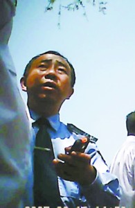 第一個趕到現(xiàn)場搶救傷者的他正在向領(lǐng)導匯報當時的情況。記者 陶剛 攝