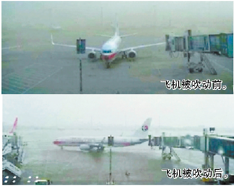 前晚6時(shí)30分,某制藥公司副總裁牛義順在武漢天河機(jī)場T2航站樓窗戶邊,用相機(jī)捕捉到一個(gè)畫面——一架東航737-800型客機(jī)被風(fēng)吹轉(zhuǎn)了約90度,尾翼碰上停在一旁的登機(jī)廊橋。