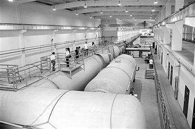 在北京市郊的雁棲湖畔,有一棟長條形的灰色建筑,這是錢學森工程科學實驗基地的空天飛行器實驗室。建筑中有一條265米長的巨大管道,這是“JF12復現(xiàn)高超聲速飛行條件激波風洞”。