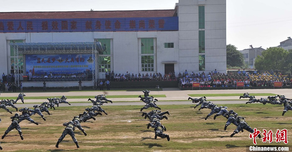 17日,在中國(guó)第13個(gè)國(guó)防教育日之際,“藍(lán)天逐夢(mèng)、天兵有約”中國(guó)空軍部隊(duì)軍營(yíng)首次社會(huì)開(kāi)放。武漢市1200余人走進(jìn)軍營(yíng),近距離接觸空降兵主戰(zhàn)武器裝備,體驗(yàn)官兵日常訓(xùn)練生活。圖為部隊(duì)訓(xùn)練。袁文濤徐金波/文 林奎/圖