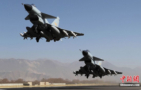 1月31日,雪域高原陽光明媚,萬里無云。駐藏空軍某軍用機場戰(zhàn)鷹列陣,車輛奔流,戰(zhàn)士們在緊張有序中拉開龍年新春首飛的序幕。圖為10時30分戰(zhàn)鷹準(zhǔn)時編隊起飛。中新社發(fā) 劉應(yīng)華 攝 圖片來源:CNSPHOTO