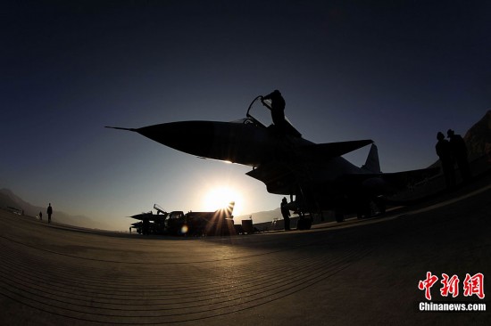 1月31日,雪域高原陽光明媚,萬里無云。駐藏空軍某軍用機場戰(zhàn)鷹列陣,車輛奔流,戰(zhàn)士們在緊張有序中拉開龍年新春首飛的序幕。圖為晨曦初露,機務(wù)人員正在緊張準(zhǔn)備戰(zhàn)鷹。中新社發(fā) 劉應(yīng)華 攝 圖片來源:CNSPHOTO