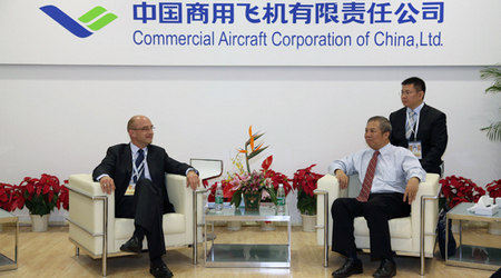 中國(guó)經(jīng)濟(jì)網(wǎng)訊 2012年11月14日中國(guó)商飛公司副總經(jīng)理吳光輝在第九屆珠海航展期間會(huì)見(jiàn)了國(guó)際航空界友人,雙方就互相關(guān)心的問(wèn)題深入交換了意見(jiàn)。
