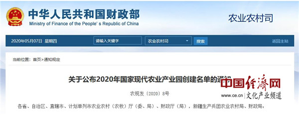 經(jīng)濟(jì)日?qǐng)?bào)-中國(guó)經(jīng)濟(jì)網(wǎng)北京5月7日訊 5月6日,農(nóng)業(yè)農(nóng)村部、財(cái)政部公布2020年國(guó)家現(xiàn)代農(nóng)業(yè)產(chǎn)業(yè)園創(chuàng)建名單。經(jīng)遴選,批準(zhǔn)北京市平谷區(qū)等31個(gè)現(xiàn)代農(nóng)業(yè)產(chǎn)業(yè)園創(chuàng)建國(guó)家現(xiàn)代農(nóng)業(yè)產(chǎn)業(yè)園;江蘇省蘇州市吳江區(qū)等8個(gè)省級(jí)現(xiàn)代農(nóng)業(yè)產(chǎn)業(yè)園納入國(guó)家現(xiàn)代農(nóng)業(yè)產(chǎn)業(yè)園創(chuàng)建管理體系。