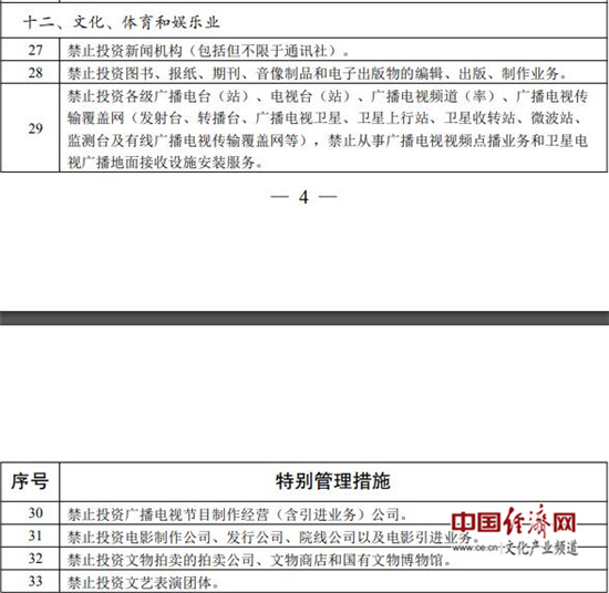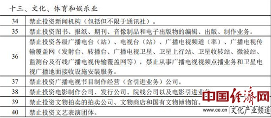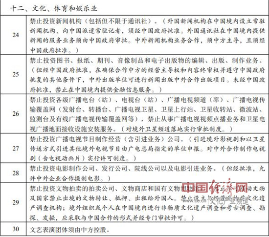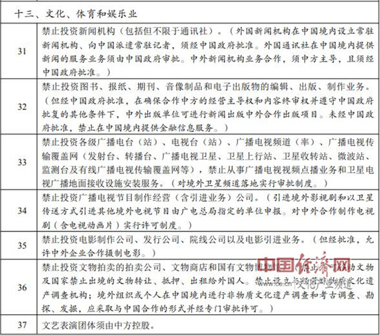 2019年版自貿(mào)試驗區(qū)負面清單文體娛相關內容