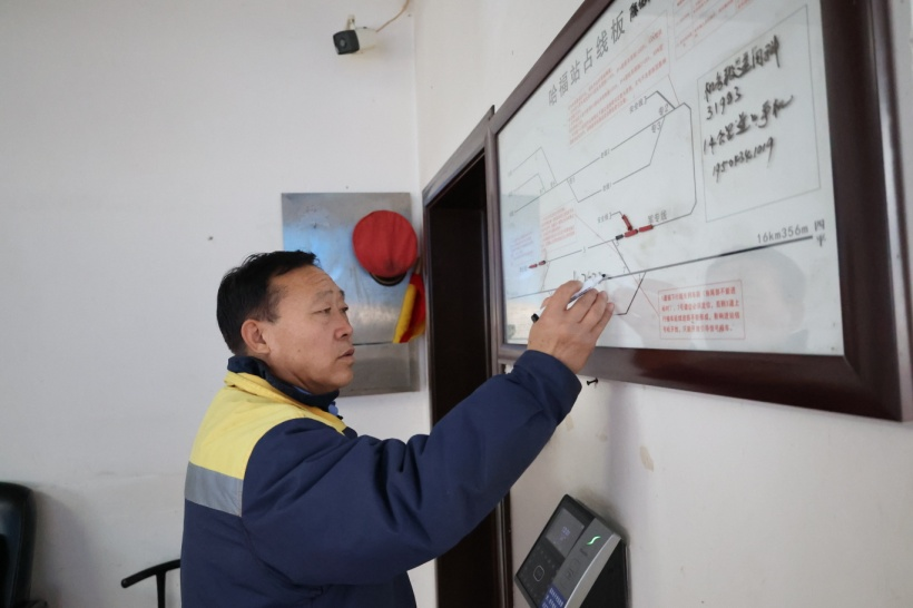 閆國會(huì)填寫站線板準(zhǔn)備接車。