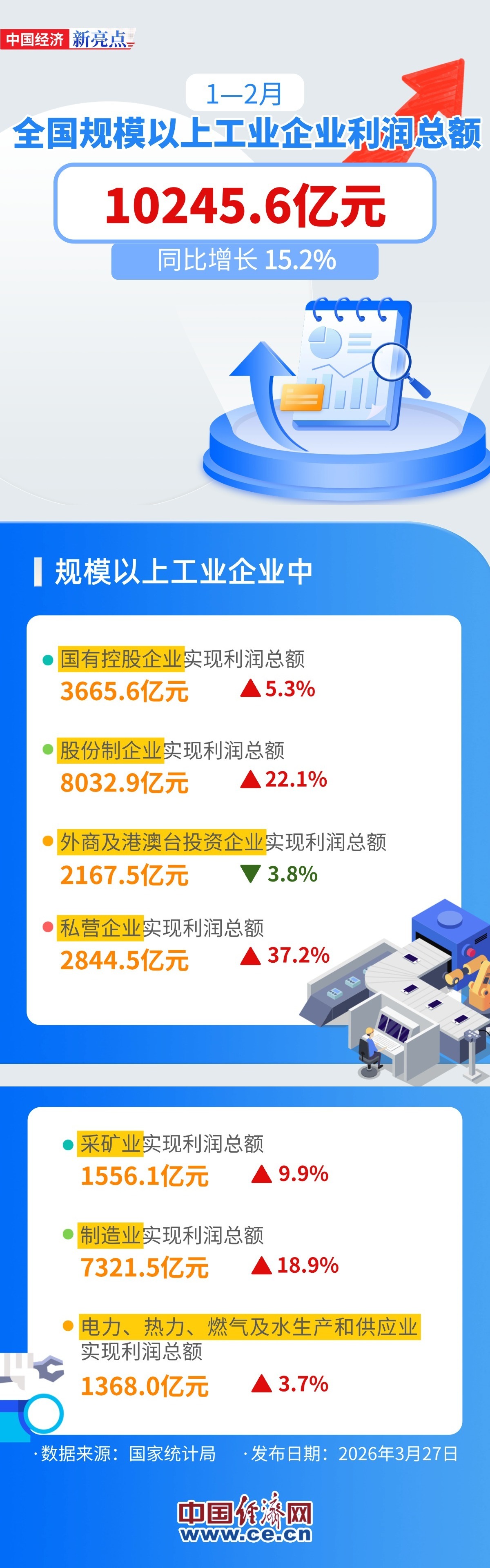 【圖解】1—2月全國規(guī)上工業(yè)企業(yè)利潤實現(xiàn)兩位數(shù)增長