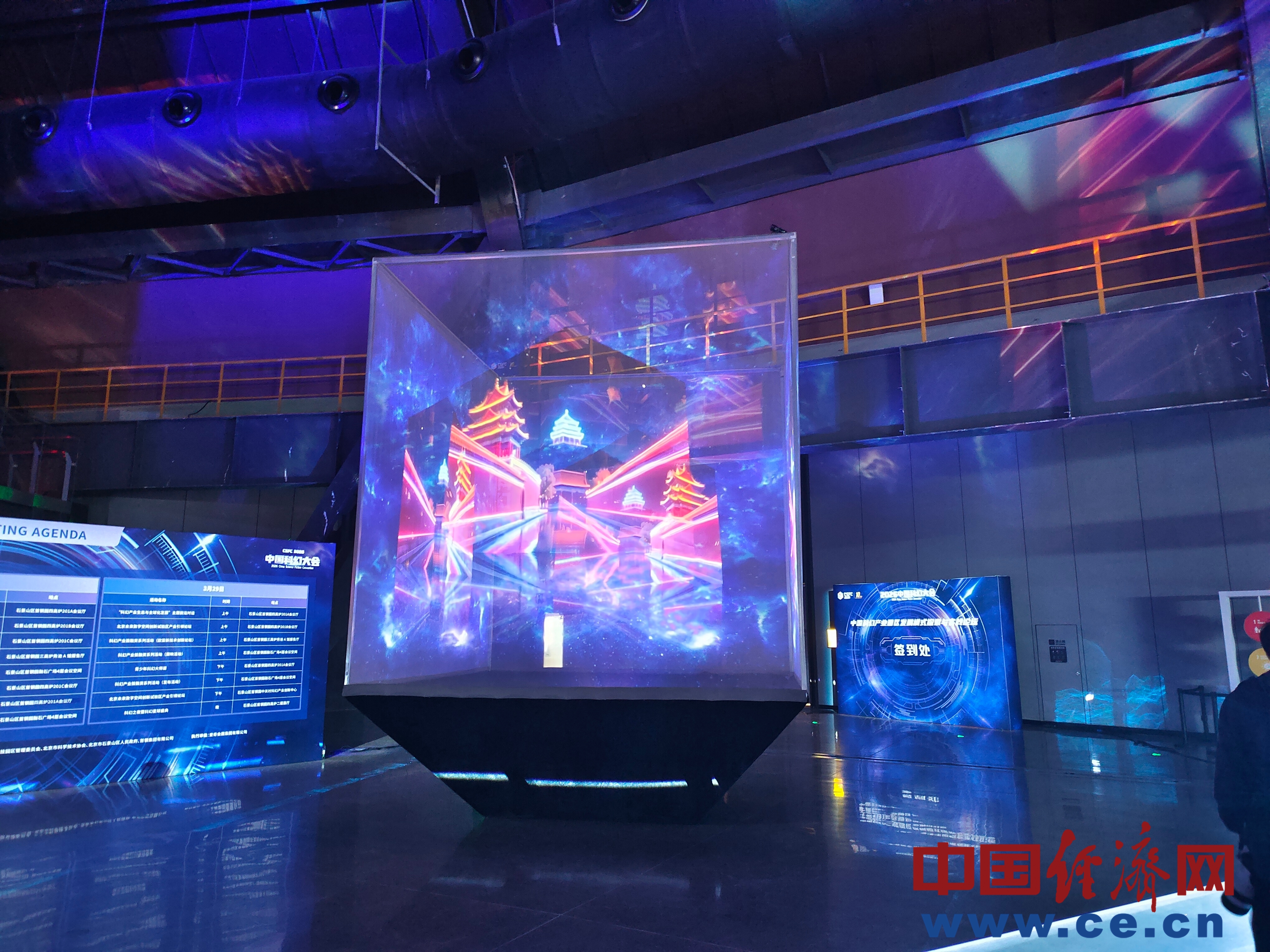 位于四高爐二樓大廳核心區(qū)域的“幻立方”,是一座通體發(fā)光的幕布立方體。中國經(jīng)濟網(wǎng)記者 朱曉倩/攝