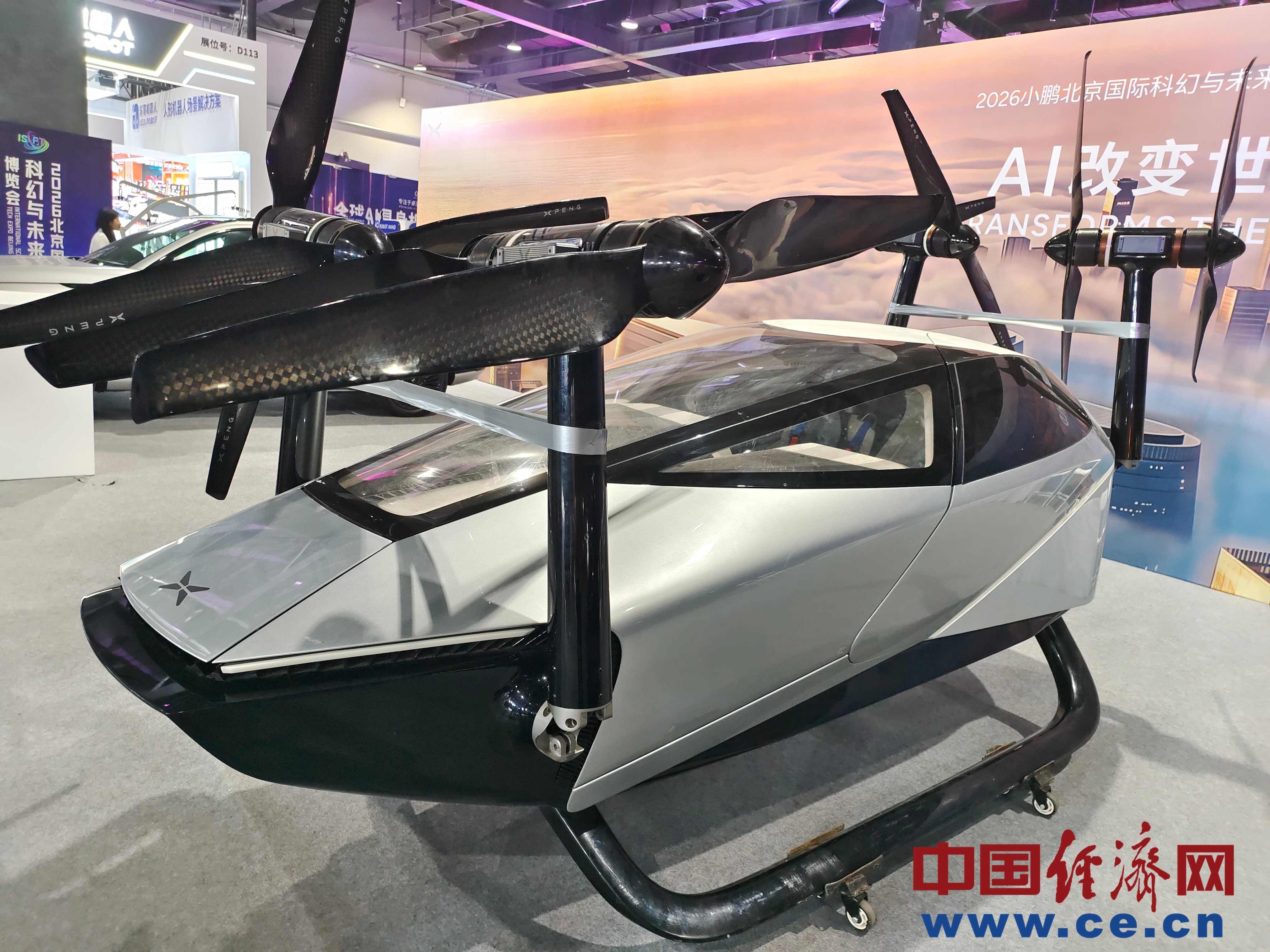 2026北京國際科幻與未來產(chǎn)業(yè)博覽會上展示的小鵬A868全傾轉(zhuǎn)混電飛行汽車。中國經(jīng)濟網(wǎng)記者 朱曉倩/攝