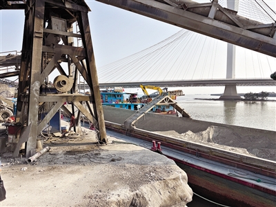 該臨時(shí)碼頭自建占地約400畝,未經(jīng)過正規(guī)審批,形成以砂石、水泥、粉煤灰、預(yù)拌混凝土、砂漿等為主的建材中轉(zhuǎn)產(chǎn)業(yè)集群。