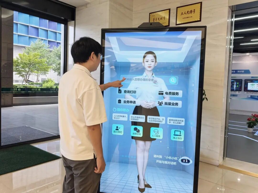 杭州錢江新城供電營(yíng)業(yè)廳的“數(shù)字導(dǎo)引員”。(丁豪)