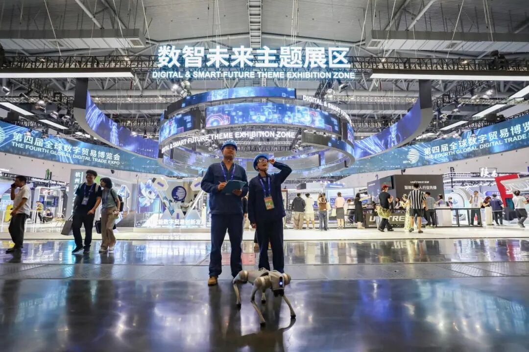 杭州供電公司員工借助AI設(shè)備開展全球數(shù)字貿(mào)易博覽會(huì)保電工作。(姚靖霖)