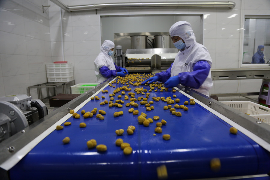 品牌賦能下,龍頭企業(yè)扛起了板栗深加工的大梁。在秦皇島百峰食品有限公司的生產(chǎn)車間內(nèi),自動(dòng)化生產(chǎn)線上顆顆板栗經(jīng)篩選、去殼、殺菌等程序后,變身板栗仁、冰栗等深加工產(chǎn)品?!肮静捎盟賰鲦i鮮技術(shù)破解板栗‘半年鮮’的短板,全面提升產(chǎn)品附加值?!惫绢檰?wèn)杜青剛介紹,這些產(chǎn)品不僅暢銷國(guó)內(nèi)市場(chǎng)、入駐盒馬鮮生等大型商超,還遠(yuǎn)銷日韓、歐美等國(guó)家和地區(qū)。截至目前,企業(yè)的板栗及深加工產(chǎn)品訂單額達(dá)1.23億元,較去年同期增長(zhǎng)10%,展現(xiàn)出良好的市場(chǎng)增長(zhǎng)活力。