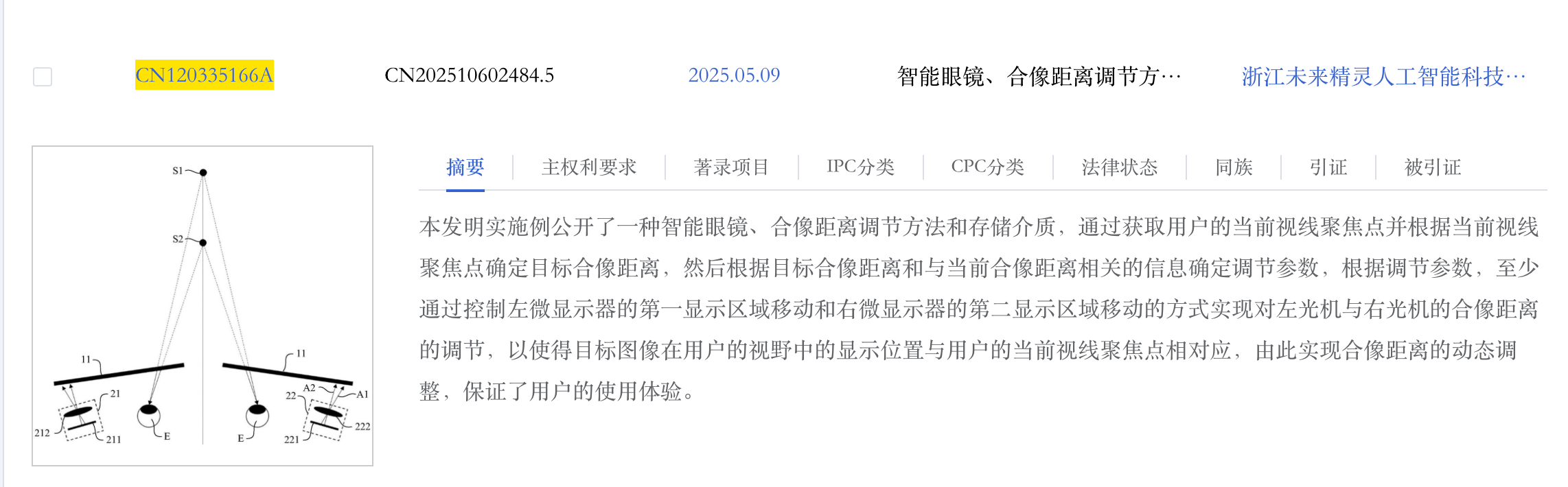11月14日,記者獲悉,夸克AI眼鏡已經(jīng)提交了一項與近眼顯示調(diào)節(jié)相關(guān)的發(fā)明專利——《智能眼鏡、合像距離調(diào)節(jié)方法和存儲介質(zhì)》(公開號:CN120335166A)。