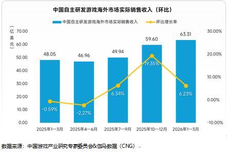 2026年1—3月,中國(guó)移動(dòng)游戲市場(chǎng)實(shí)際銷售收入為676.23億元,環(huán)比增長(zhǎng)0.36%,同比增長(zhǎng)6.28%。